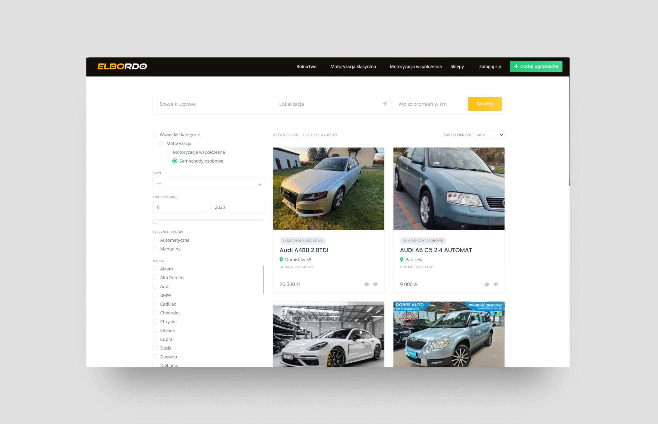 Portal Elbordo.pl został zaprojektowany i stworzony jako kompleksowy, wielobranżowy serwis ogłoszeniowy, który wyróżnia się intuicyjnym układem i skupieniem na konkretnych niszach rynkowych, zwłaszcza w obszarze rolnictwa.